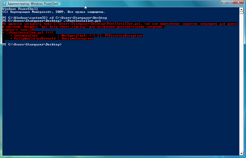 Не удается загрузить файл PowerShell, так как выполнение скриптов запрещено для данной системы